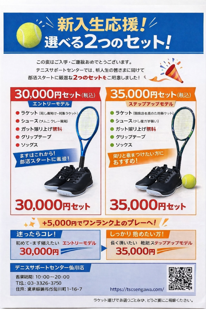 当店では、この春からテニス部に入部される方向けで